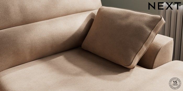 7.2.10 Buy Stamford Highback Large Sofa Chaise - Right Hand Luxe Chenille Mid Natural Large Square Angle - Chrome Metal from the Next UK online shop Click here to use our accessible website