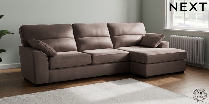 7.2.10 Buy Stamford Highback Large Sofa Chaise - Right Hand Luxe Chenille Mink Brown Large Square Angle - Dark from the Next UK online shop Click here to use our accessible website
