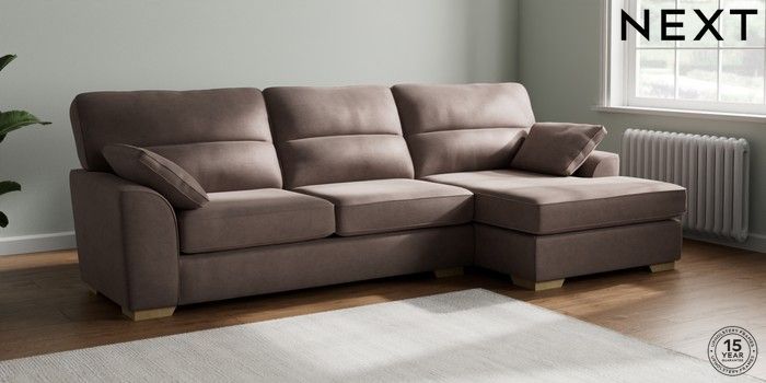 7.2.10 Buy Stamford Highback Large Sofa Chaise - Right Hand Luxe Chenille Mink Brown Large Square Angle - Light from the Next UK online shop Click here to use our accessible website