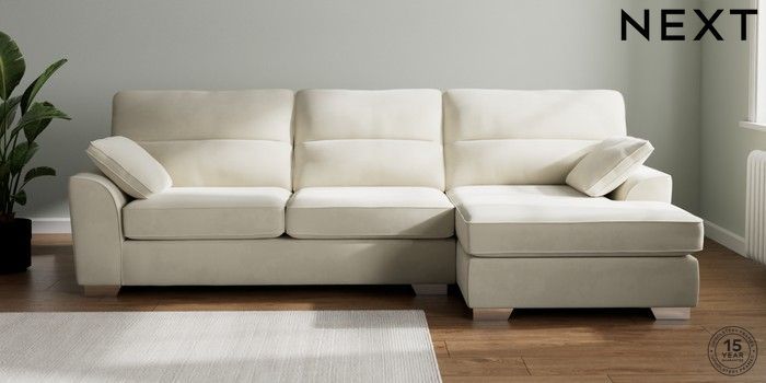 7.0.3 Buy Stamford Highback Large Sofa Chaise - Right Hand Luxe Chenille Oyster Large Square Angle - Chrome Metal from the Next UK online shop Click here to use our accessible website