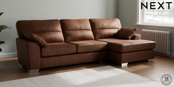 7.3.1 Buy Stamford Highback Large Sofa Chaise - Right Hand Monza Faux Leather Easy Clean Chestnut Brown Large Square Angle - Chrome Metal from the Next UK online shop Click here to use our accessible website