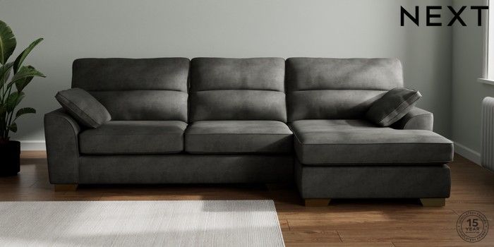 7.3.1 Buy Stamford Highback Large Sofa Chaise - Right Hand Monza Faux Leather Easy Clean Dark Grey Large Square Angle - Brushed Brass from the Next UK online shop Click here to use our accessible website