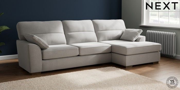 7.2.10 Buy Stamford Highback Large Sofa Chaise - Right Hand Natural Mix Light Grey Large Square Angle - Mid from the Next UK online shop Click here to use our accessible website