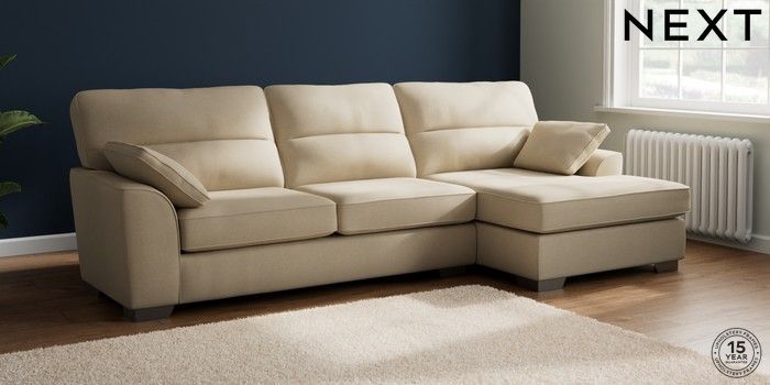7.3.1 Buy Stamford Highback Large Sofa Chaise - Right Hand Natural Mix Light Natural Large Square Angle - Gunmetal from the Next UK online shop Click here to use our accessible website
