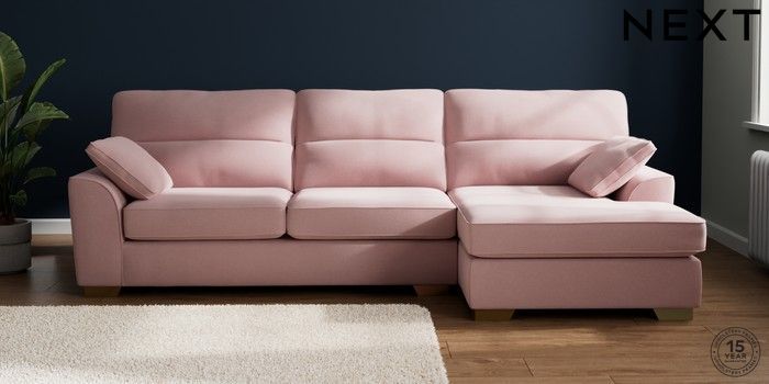 7.3.1 Buy Stamford Highback Large Sofa Chaise - Right Hand Natural Mix Light Rose Pink Large Square Angle - Brushed Brass from the Next UK online shop Click here to use our accessible website