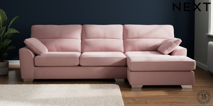 7.3.1 Buy Stamford Highback Large Sofa Chaise - Right Hand Natural Mix Light Rose Pink Large Square Angle - Chrome Metal from the Next UK online shop Click here to use our accessible website