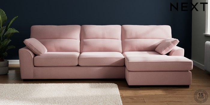 7.2.10 Buy Stamford Highback Large Sofa Chaise - Right Hand Natural Mix Light Rose Pink Large Square Angle - Dark from the Next UK online shop Click here to use our accessible website