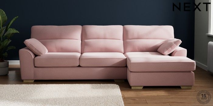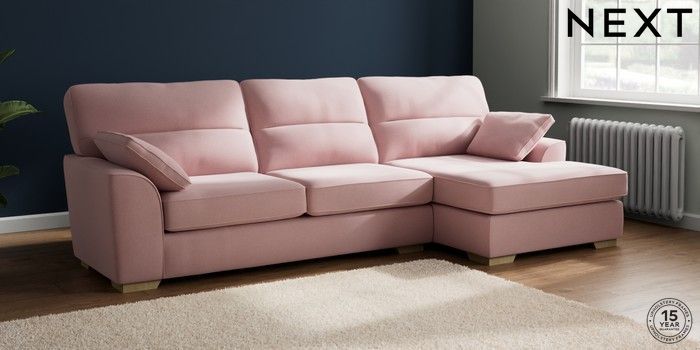 7.2.10 Buy Stamford Highback Large Sofa Chaise - Right Hand Natural Mix Light Rose Pink Large Square Angle - Light from the Next UK online shop Click here to use our accessible website