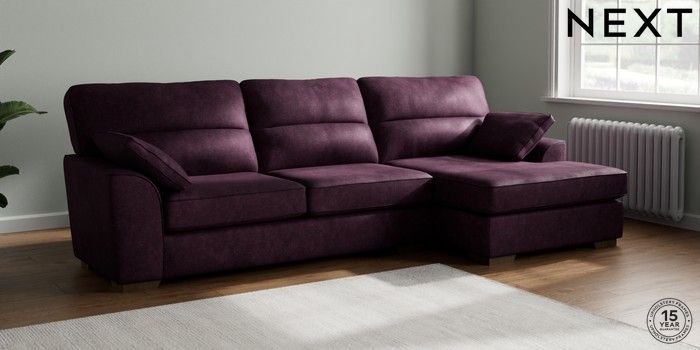 7.2.10 Buy Stamford Highback Large Sofa Chaise - Right Hand Plush Chenille Dark Plum Purple Large Square Angle - Mid from the Next UK online shop Click here to use our accessible website