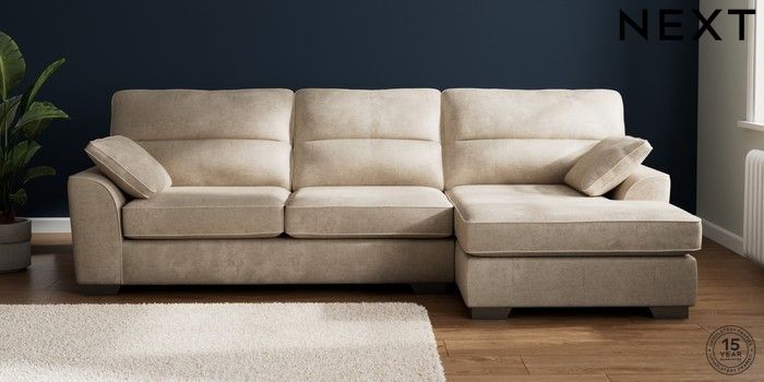 7.2.10 Buy Stamford Highback Large Sofa Chaise - Right Hand Plush Chenille Light Natural Large Square Angle - Gunmetal from the Next UK online shop Click here to use our accessible website