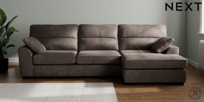 7.2.10 Buy Stamford Highback Large Sofa Chaise - Right Hand Plush Chenille Mink Brown Large Square Angle - Dark from the Next UK online shop Click here to use our accessible website