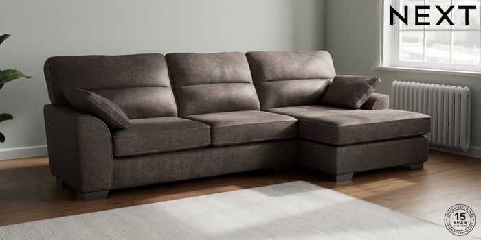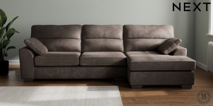 7.2.10 Buy Stamford Highback Large Sofa Chaise - Right Hand Plush Chenille Mink Brown Large Square Angle - Gunmetal from the Next UK online shop Click here to use our accessible website