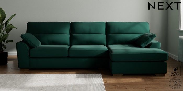 7.2.10 Buy Stamford Highback Large Sofa Chaise - Right Hand Plush Velvet Easy Clean Bottle Green Large Square Angle - Mid from the Next UK online shop Click here to use our accessible website