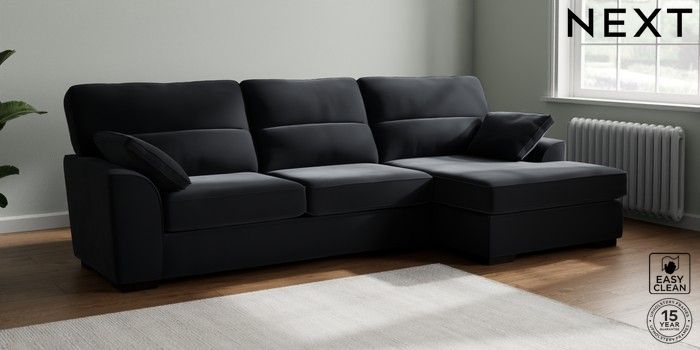 7.2.10 Buy Stamford Highback Large Sofa Chaise - Right Hand Plush Velvet Easy Clean Charcoal Grey Large Square Angle - Dark from the Next UK online shop Click here to use our accessible website
