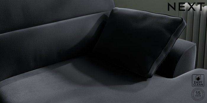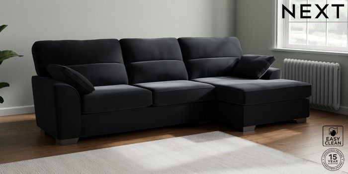 7.2.10 Buy Stamford Highback Large Sofa Chaise - Right Hand Plush Velvet Easy Clean Charcoal Grey Large Square Angle - Gunmetal from the Next UK online shop Click here to use our accessible website