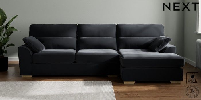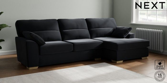 7.2.10 Buy Stamford Highback Large Sofa Chaise - Right Hand Plush Velvet Easy Clean Charcoal Grey Large Square Angle - Light from the Next UK online shop Click here to use our accessible website