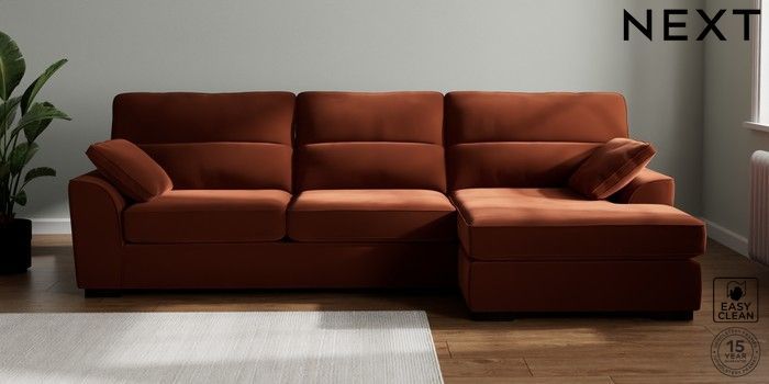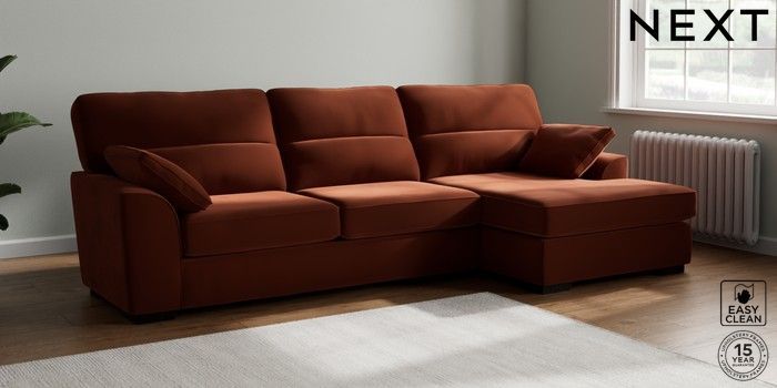 7.3.1 Buy Stamford Highback Large Sofa Chaise - Right Hand Plush Velvet Easy Clean Ginger Orange Large Square Angle - Dark from the Next UK online shop Click here to use our accessible website