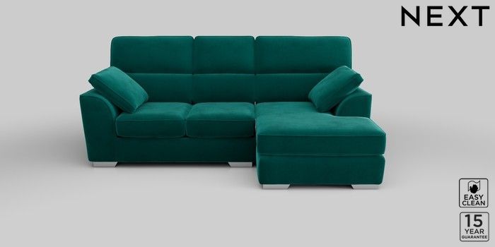 6.12.1 Buy Stamford Highback Large Sofa Chaise - Right Hand Plush Velvet Easy Clean Juniper Green Large Square Angle - Chrome Metal from the Next UK online shop Click here to use our accessible website