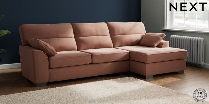 7.3.1 Buy Stamford Highback Large Sofa Chaise - Right Hand Relaxed Linen Look Light Rust Brown Large Square Angle - Gunmetal from the Next UK online shop Click here to use our accessible website