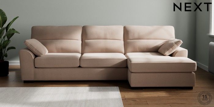 7.2.10 Buy Stamford Highback Large Sofa Chaise - Right Hand Relaxed Linen Look Mid Natural Large Square Angle - Dark from the Next UK online shop Click here to use our accessible website