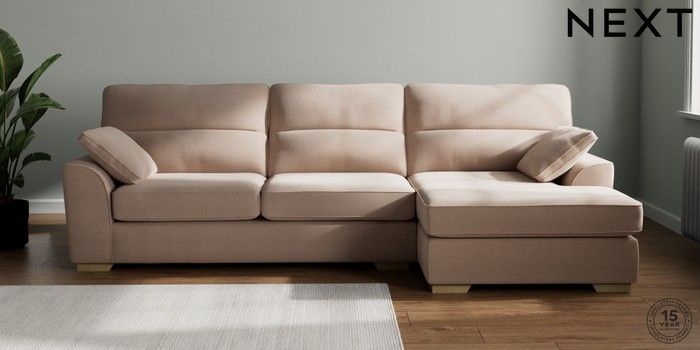 7.2.10 Buy Stamford Highback Large Sofa Chaise - Right Hand Relaxed Linen Look Mid Natural Large Square Angle - Light from the Next UK online shop Click here to use our accessible website