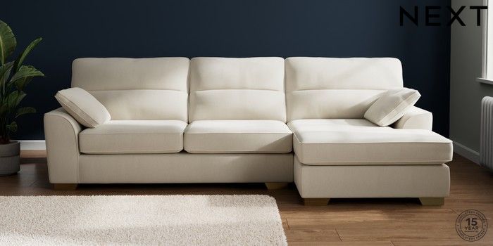 7.3.1 Buy Stamford Highback Large Sofa Chaise - Right Hand Relaxed Linen Look Oyster Large Square Angle - Brushed Brass from the Next UK online shop Click here to use our accessible website
