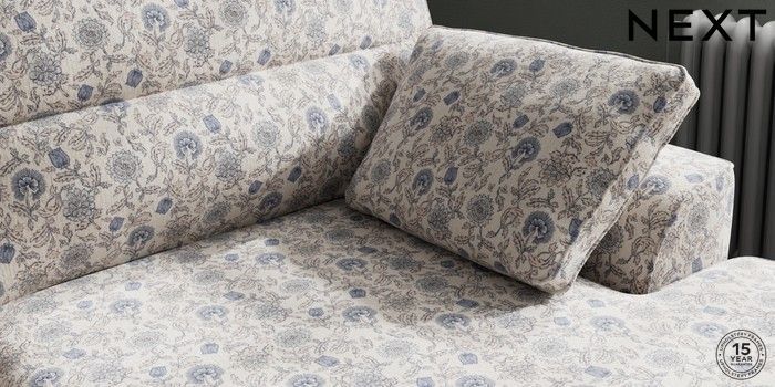 7.3.1 Buy Stamford Highback Large Sofa Chaise - Right Hand Relaxed Linen Look Print Woodblock Floral Blue Large Square Angle - Chrome Metal from the Next UK online shop