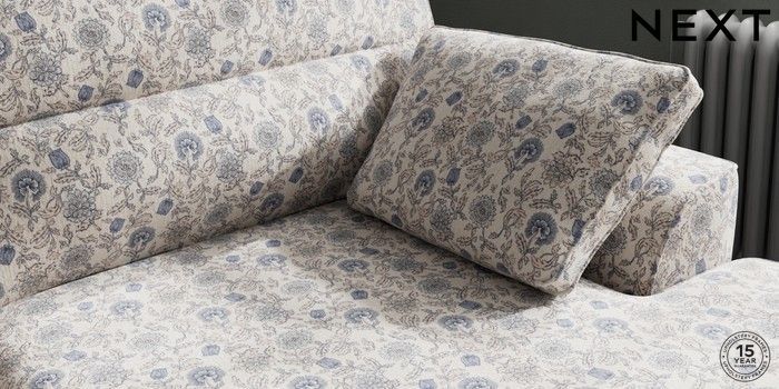 7.3.1 Buy Stamford Highback Large Sofa Chaise - Right Hand Relaxed Linen Look Print Woodblock Floral Blue Large Square Angle - Gunmetal from the Next UK online shop