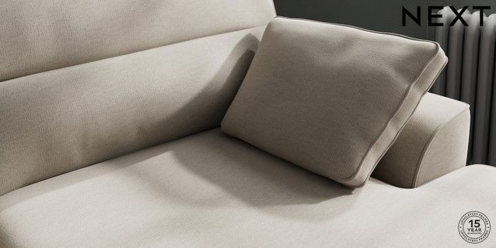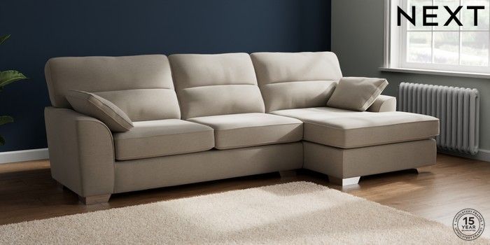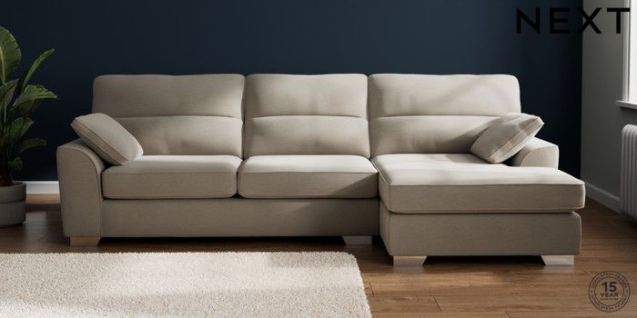 7.2.10 Buy Stamford Highback Large Sofa Chaise - Right Hand Ripple Chenille Light Natural Large Square Angle - Chrome Metal from the Next UK online shop Click here to use our accessible website