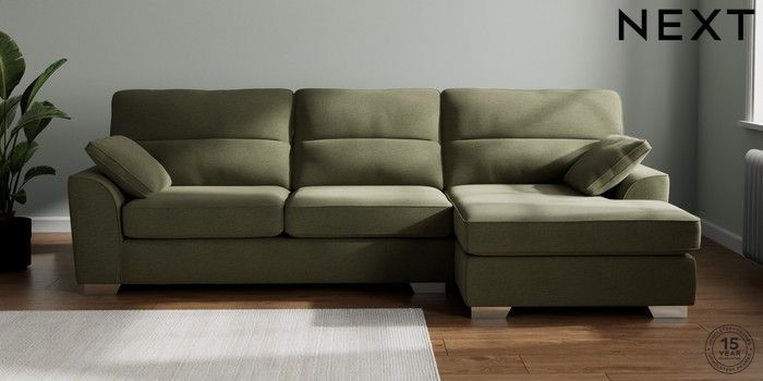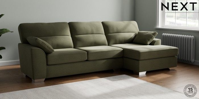 7.3.1 Buy Stamford Highback Large Sofa Chaise - Right Hand Ripple Chenille Mid Moss Green Large Square Angle - Chrome Metal from the Next UK online shop Click here to use our accessible website
