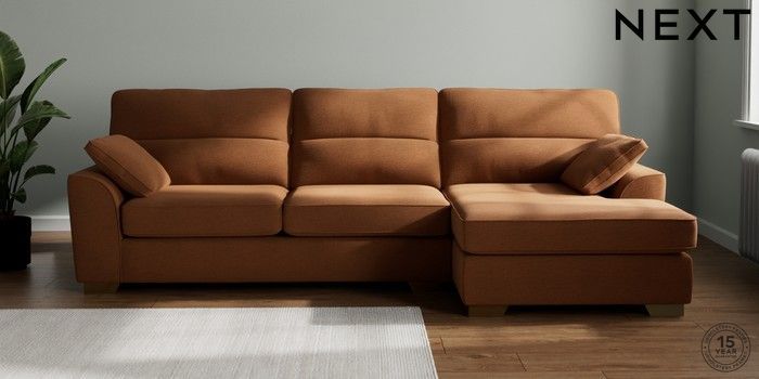 7.2.10 Buy Stamford Highback Large Sofa Chaise - Right Hand Ripple Chenille Mid Rust Brown Large Square Angle - Brushed Brass from the Next UK online shop Click here to use our accessible website