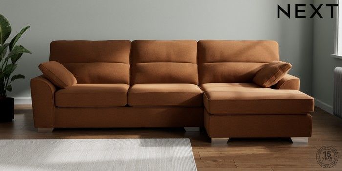 7.2.10 Buy Stamford Highback Large Sofa Chaise - Right Hand Ripple Chenille Mid Rust Brown Large Square Angle - Chrome Metal from the Next UK online shop Click here to use our accessible website