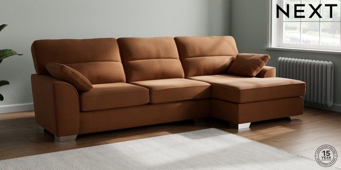 6.12.1 Buy Stamford Highback Large Sofa Chaise - Right Hand Ripple Chenille Mid Rust Brown Large Square Angle - Chrome Metal from the Next UK online shop Click here to use our accessible website