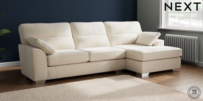 7.2.10 Buy Stamford Highback Large Sofa Chaise - Right Hand Ripple Chenille Oyster Large Square Angle - Chrome Metal from the Next UK online shop Click here to use our accessible website