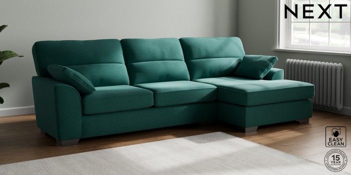 7.2.6 Buy Stamford Highback Large Sofa Chaise - Right Hand Fine Chenille Easy Clean Dark Juniper Green Large Square Angle - Gunmetal from the Next UK online shop Click here to use our accessible website