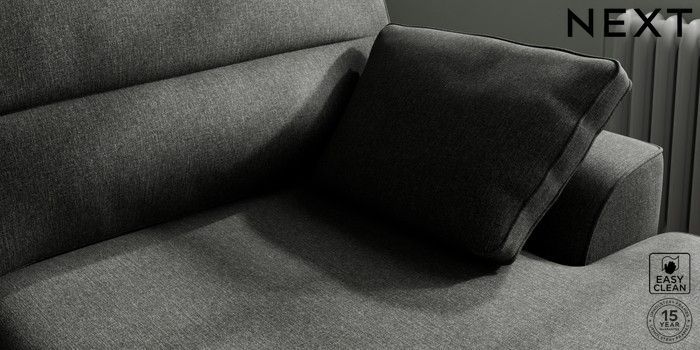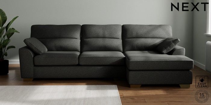 7.2.10 Buy Stamford Highback Large Sofa Chaise - Right Hand Tweedy Blend Easy Clean Charcoal Grey Large Square Angle - Brushed Brass from the Next UK online shop Click here to use our accessible website
