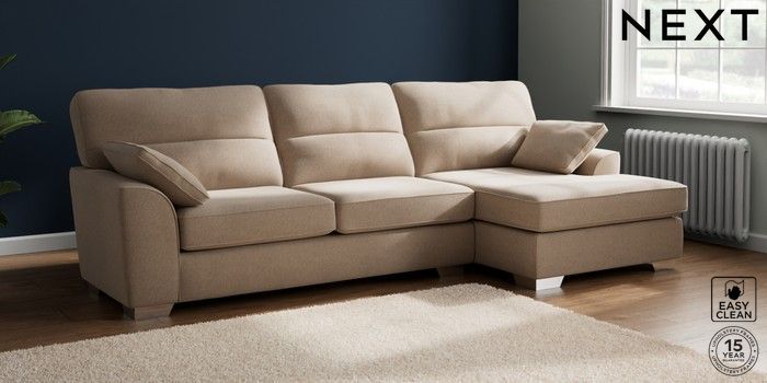 6.12.1 Buy Stamford Highback Large Sofa Chaise - Right Hand Tweedy Blend Easy Clean Light Dove Natural Large Square Angle - Chrome Metal from the Next UK online shop Click here to use our accessible website