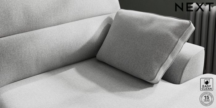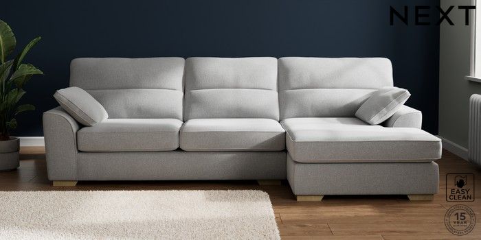 7.2.10 Buy Stamford Highback Large Sofa Chaise - Right Hand Tweedy Blend Easy Clean Light Silver Grey Large Square Angle - Light from the Next UK online shop Click here to use our accessible website