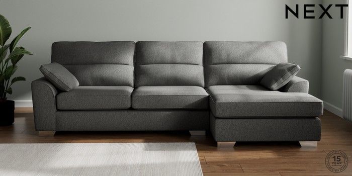 7.3.1 Buy Stamford Highback Large Sofa Chaise - Right Hand Tweedy Chenille Dark Grey Large Square Angle - Chrome Metal from the Next UK online shop Click here to use our accessible website