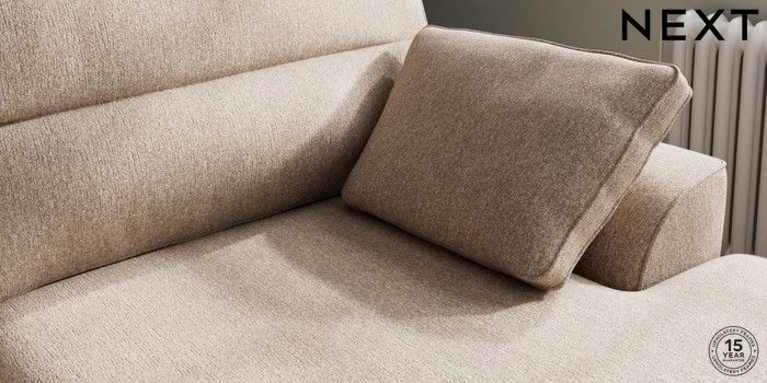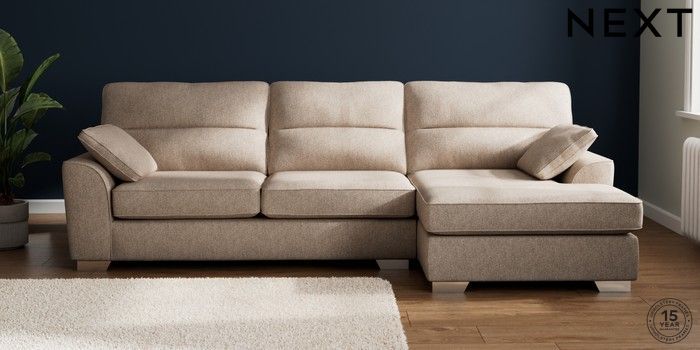 7.3.1 Buy Stamford Highback Large Sofa Chaise - Right Hand Tweedy Chenille Mid Natural Large Square Angle - Chrome Metal from the Next UK online shop Click here to use our accessible website
