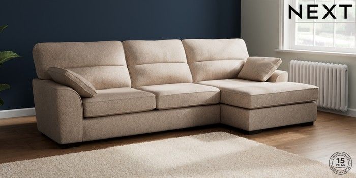 7.2.10 Buy Stamford Highback Large Sofa Chaise - Right Hand Tweedy Chenille Mid Natural Large Square Angle - Dark from the Next UK online shop Click here to use our accessible website