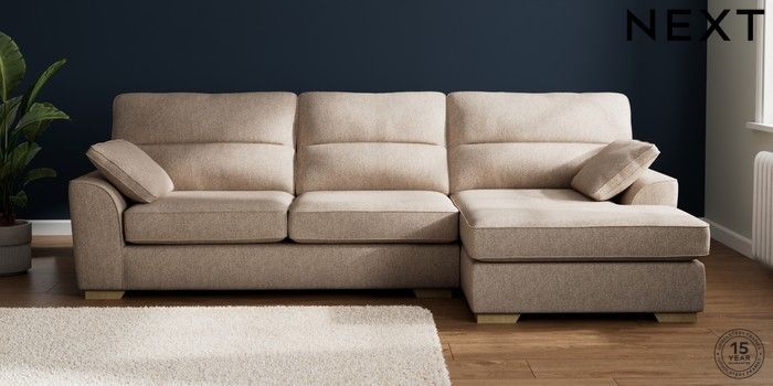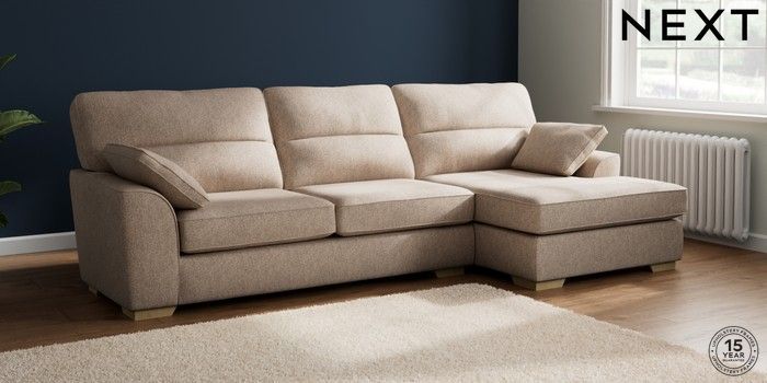 7.2.10 Buy Stamford Highback Large Sofa Chaise - Right Hand Tweedy Chenille Mid Natural Large Square Angle - Light from the Next UK online shop Click here to use our accessible website
