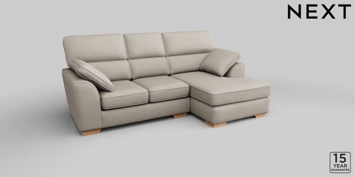 6.12.1 Buy Stamford Highback Large Sofa Chaise - Right Hand Tweedy Chenille Oyster Large Square Angle - Light from the Next UK online shop Click here to use our accessible website