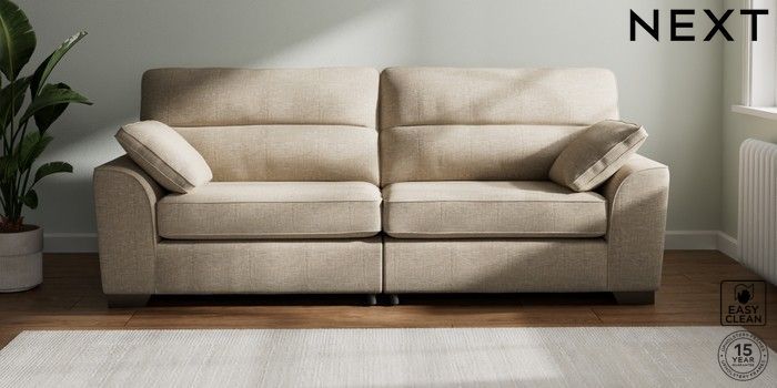 6.12.13 Buy Stamford Highback 4 Seater Sofa Boucle Weave Easy Clean Dark Natural Large Square Angle - Gunmetal from the Next UK online shop Click here to use our accessible website