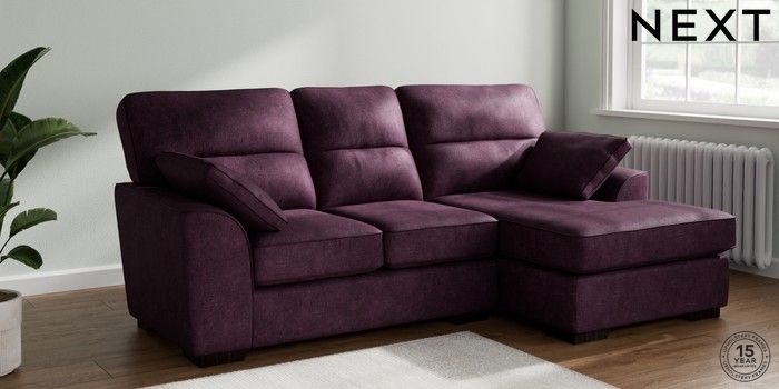 7.2.10 Buy Stamford Highback Small Sofa Chaise - Right Hand Plush Chenille Dark Plum Purple Large Square Angle - Dark from the Next UK online shop Click here to use our accessible website