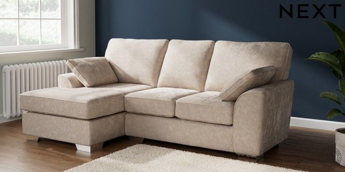 7.2.6 Buy Stamford Highback Small Sofa Chaise - Left Hand Distressed Velour Mid Natural Large Square Angle - Chrome Metal from the Next UK online shop Click here to use our accessible website