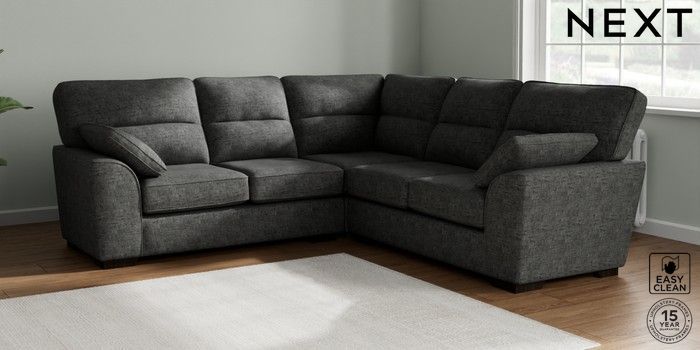 7.2.10 Buy Stamford Highback Medium Corner Sofa - Universal Boucle Weave Easy Clean Charcoal Grey Large Square Angle - Dark from the Next UK online shop Click here to use our accessible website