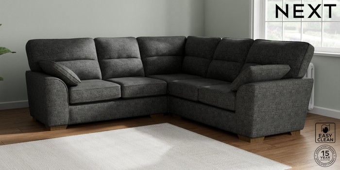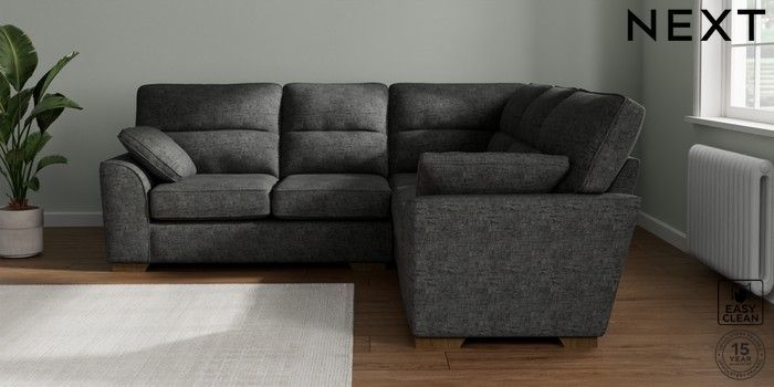 7.2.10 Buy Stamford Highback Medium Corner Sofa - Universal Boucle Weave Easy Clean Charcoal Grey Large Square Angle - Mid from the Next UK online shop Click here to use our accessible website
