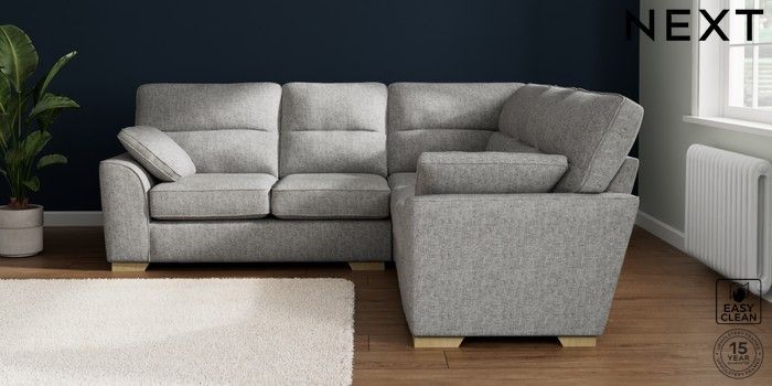 7.2.10 Buy Stamford Highback Medium Corner Sofa - Universal Chunky Boucle Easy Clean Light Grey Large Square Angle - Light from the Next UK online shop Click here to use our accessible website