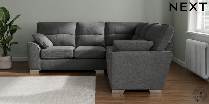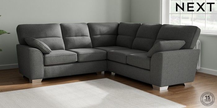 7.2.10 Buy Stamford Highback Medium Corner Sofa - Universal Chunky Texture Dark Grey Large Square Angle - Chrome Metal from the Next UK online shop Click here to use our accessible website